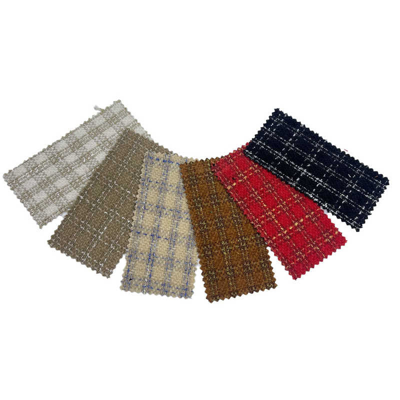 Ce tissu, désigné article 3764, est un textile tissé en tweed composé à 100 % d'autres fibres. Avec une masse par unité de surface de 560 g/m, il présente une construction de poids moyen à lourd. La surface combine un motif à carreaux avec une structure en chenille ayant subi un processus de brossage. Cette technique de finition soulève les fibres des fils chenille, créant une texture de surface douce. Le motif à carreaux est formé par l'interaction de fils colorés dans le processus de tissage, conservant ainsi la précision géométrique. Ces techniques de fabrication aboutissent à un tissu avec à la fois une définition visuelle du motif et une qualité tactile distinctive. Ce tweed tissé convient aux vêtements pour femmes où l'intérêt de la surface et l'intégrité structurelle sont requis.