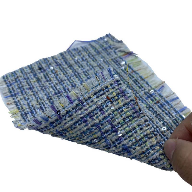 Ce tissu, désigné article ZZH24018, est un textile en tweed composé de 20% de laine et 80% de polyester. Avec une masse par unité de surface de 560 g/m, le matériau présente une construction de poids moyen. Le tissu intègre des paillettes métalliques fixées dans la structure en tweed, créant une réflexion intermittente de la lumière sur la surface. Le mélange de laine et de polyester offre un équilibre entre les caractéristiques des fibres naturelles et la cohérence structurelle. Cette combinaison donne un matériau présentant une variation de texture de surface et une stabilité dimensionnelle. Ces spécifications rendent ce tissu en tweed applicable aux manteaux pour femmes où l'intérêt visuel et la performance pratique sont pris en compte.